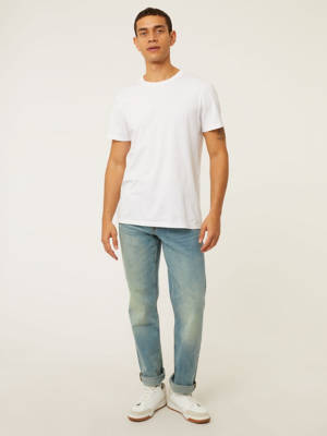 Light Blue Straight Leg Jeans With Stretch Men George At Asda